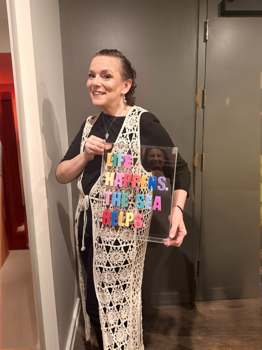 Resin and Acrylic "Life Happens, The Sea Helps" Sign, 11x14, Multi Color | Mary's Place