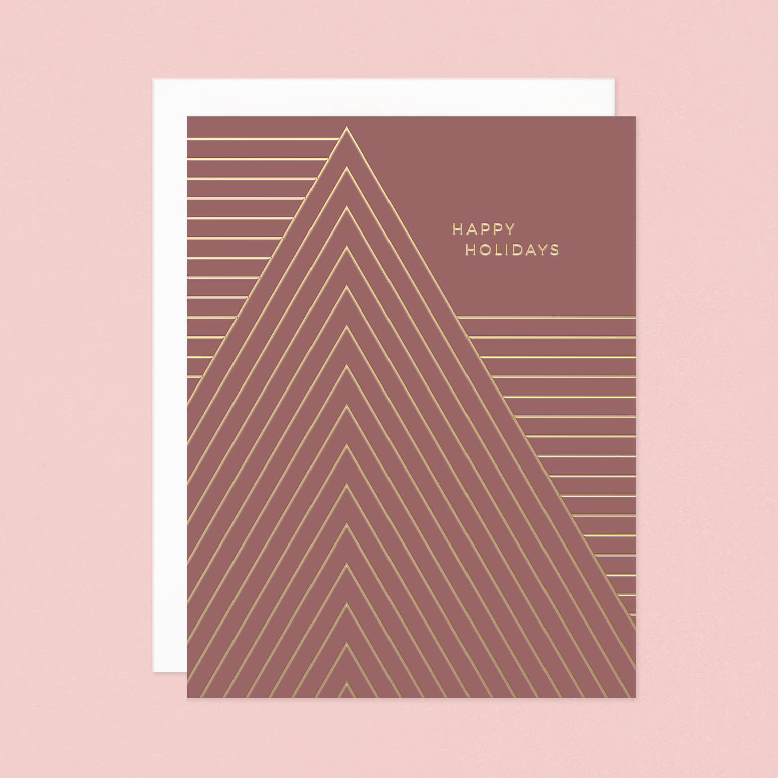 Our Abstract Trees Happy Holidays card features modern shapes in gold foil on richly colored paper.