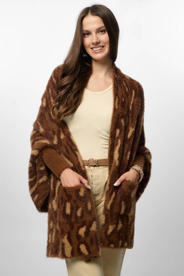 Animal Print Eyelash Knit Cardigan