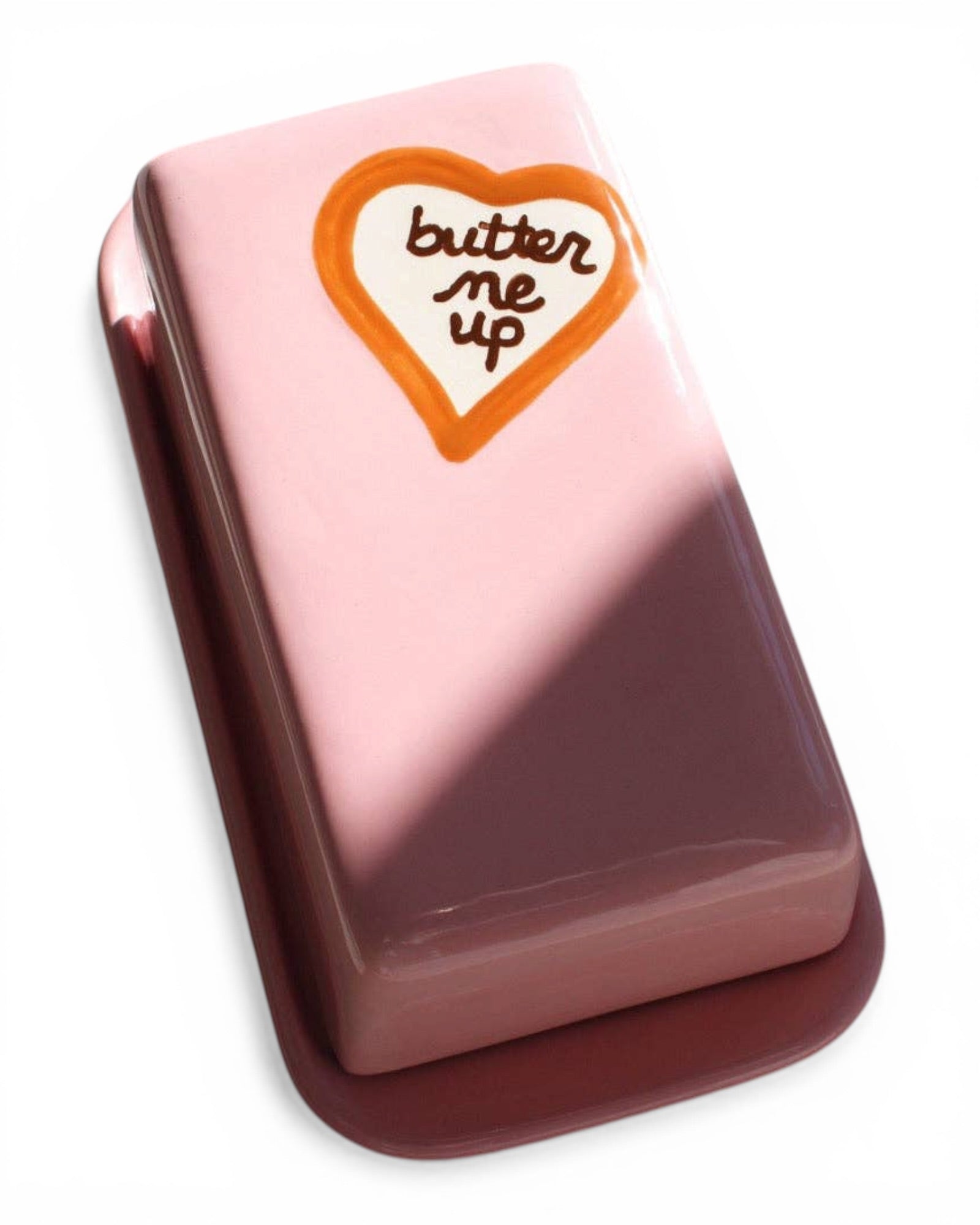 Hand-painted in a soft vintage bay pink, the “Butter Me Up” Butter Dish brings personality and nostalgia into even the simplest rituals. Designed in a wider, European-style format, it comfortably fits larger butter blocks while doubling as a statement piece on your countertop or table. Each dish is one of a kind, with subtle variations that make it feel collected, not mass-produced.