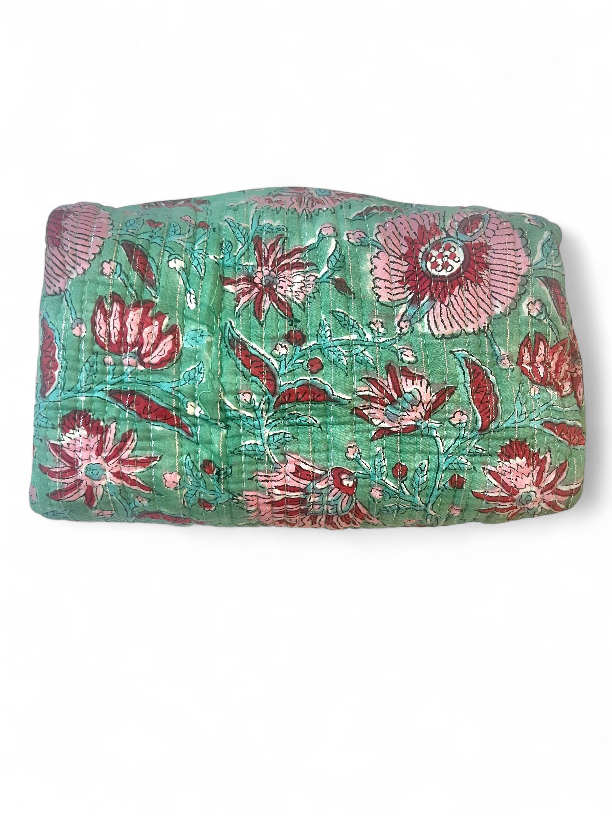 These handmade cosmetic pouches are crafted from soft cotton and feature traditional Indian block-printed designs. Each one is uniquely patterned, lightweight, and perfect for storing your everyday essentials. Stylish, functional, and easy to toss in your bag or suitcase.