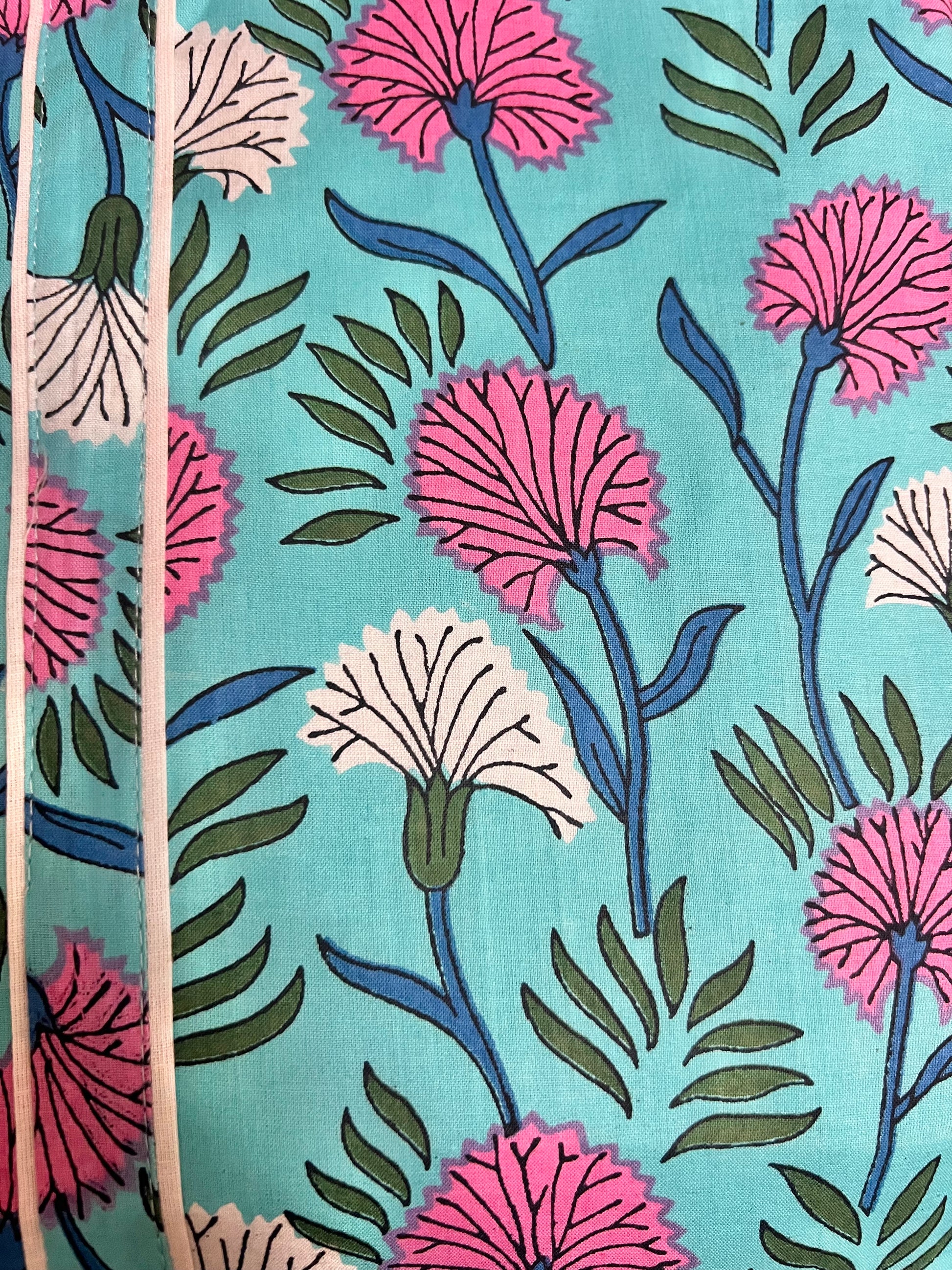 Experience unparalleled comfort with this cotton pajama set, featuring a long sleeve button-down top and adjustable drawstring pants crafted for a perfect fit. Made from soft, breathable cotton, it ensures a cozy night's sleep while allowing your skin to breathe. The unique patterns, expertly printed in India, add a touch of cultural charm and style to your nighttime routine. Ideal for lounging or restful sleep, this set combines practicality with elegant design, making it a must-have addition to your home wardrobe. Treat yourself to comfort and style every evening.