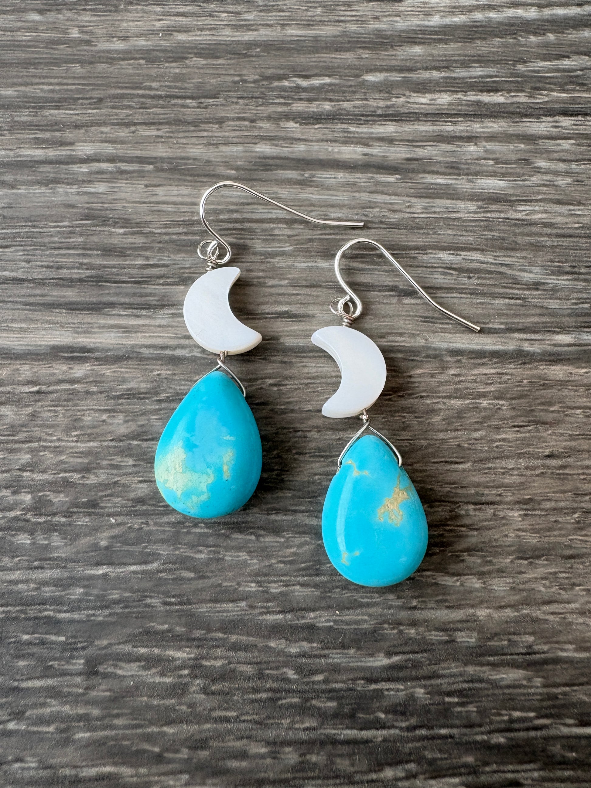 Mother of Pearl Moons w/ Turquoise Teardrop Earrings