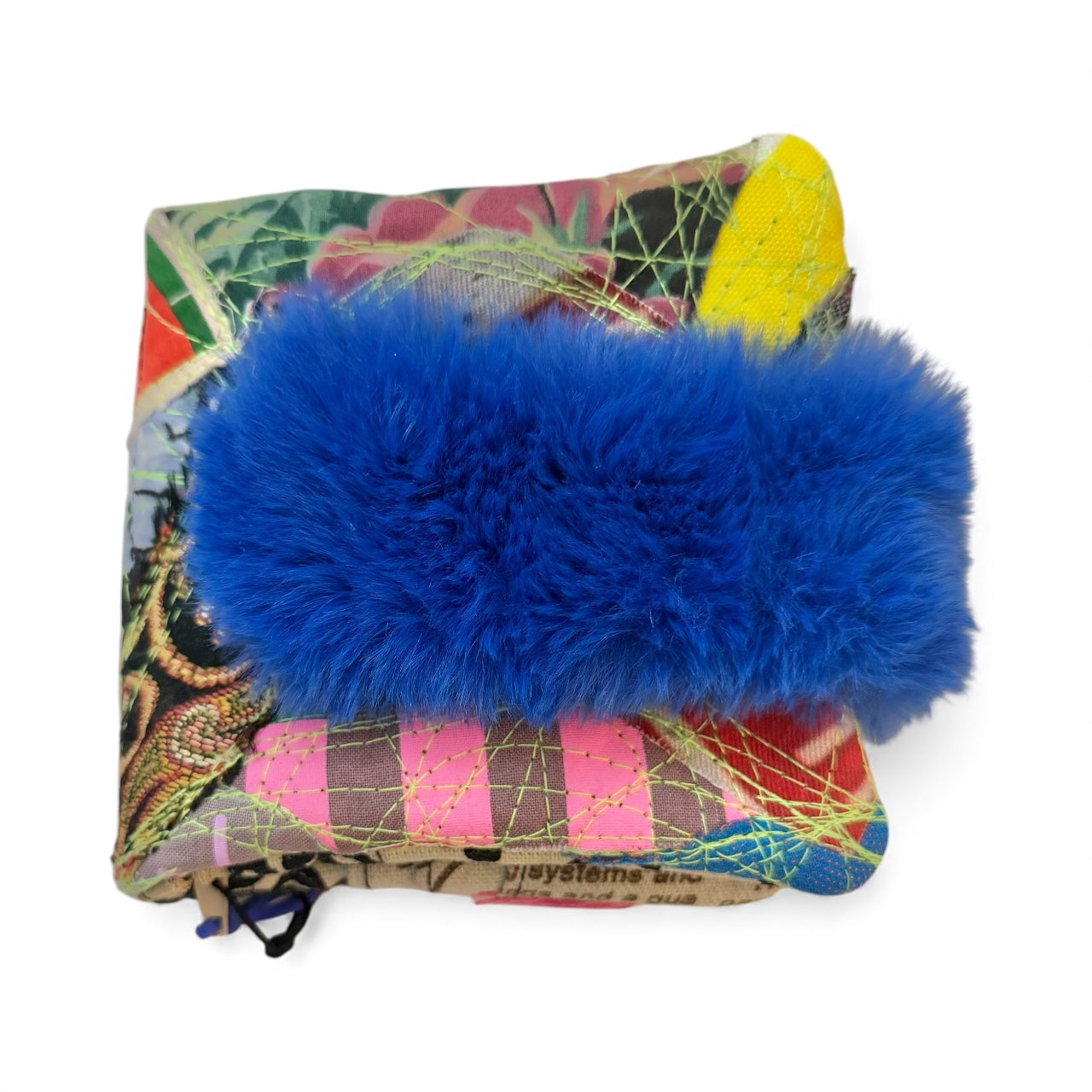 Handmade Mini wallet with furry closure, multiple pockets.