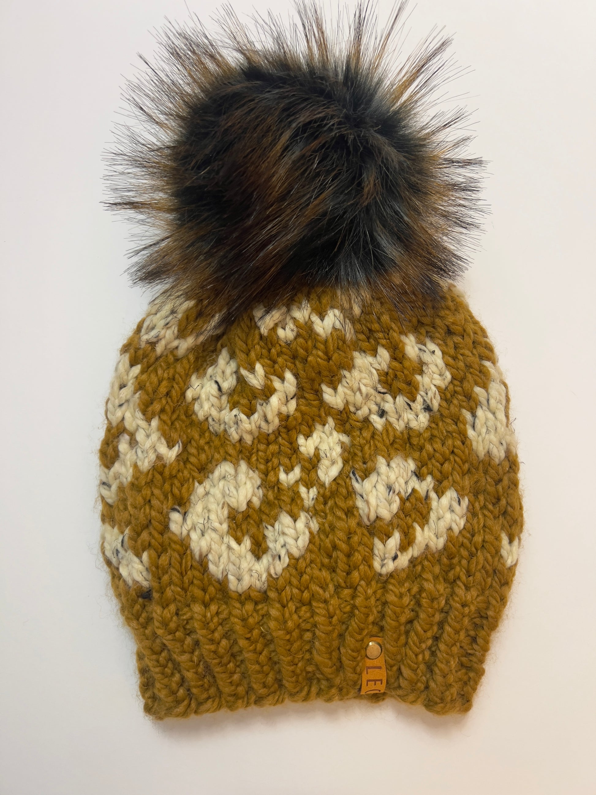 Handmade Wool Knit Hat with Faux Fur Pom | Leopard