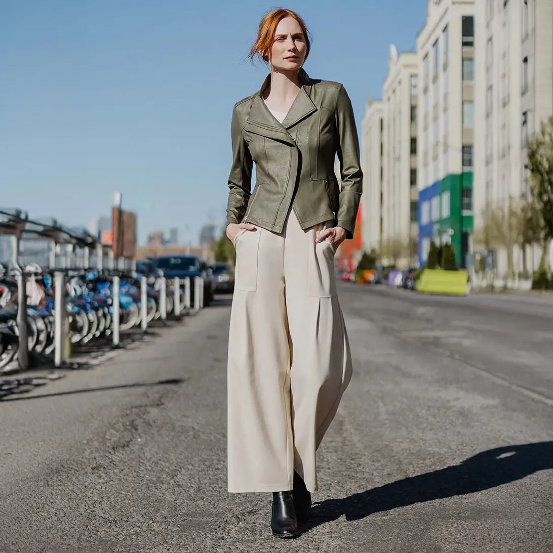 Oprah's favorite List! No need to click your heels, this Liquid Leather Signature Jacket is ready to find a home with you! Made from our beautiful signature stretch knit, extremely lightweight soft "lambskin feel" fabric with a soft matte finish. This jacket features a notched lapel with an upright collar, long sleeves, silver asymmetrical zip closure, faux pocket zipper slits as well as complimentary detailed front and backstitching. The interior is made from soft knit giving it the right amount of stretch with breathable superb wear that conforms to your body and provides you with a figure-flattering silhouette. Oprah's favorite List! Liquid Leather Knit This vegan-friendly fabric offers superior comfort and style. Crafted from our signature flexible polyester blend and coated in a faux leather-like matte finish, it's cool to the touch, quick-drying, and easy to maintain. Travel Friendly Ultra Lightweight Soft Knit Fabric - Faux Leather Matte Finish Vegan Friendly!