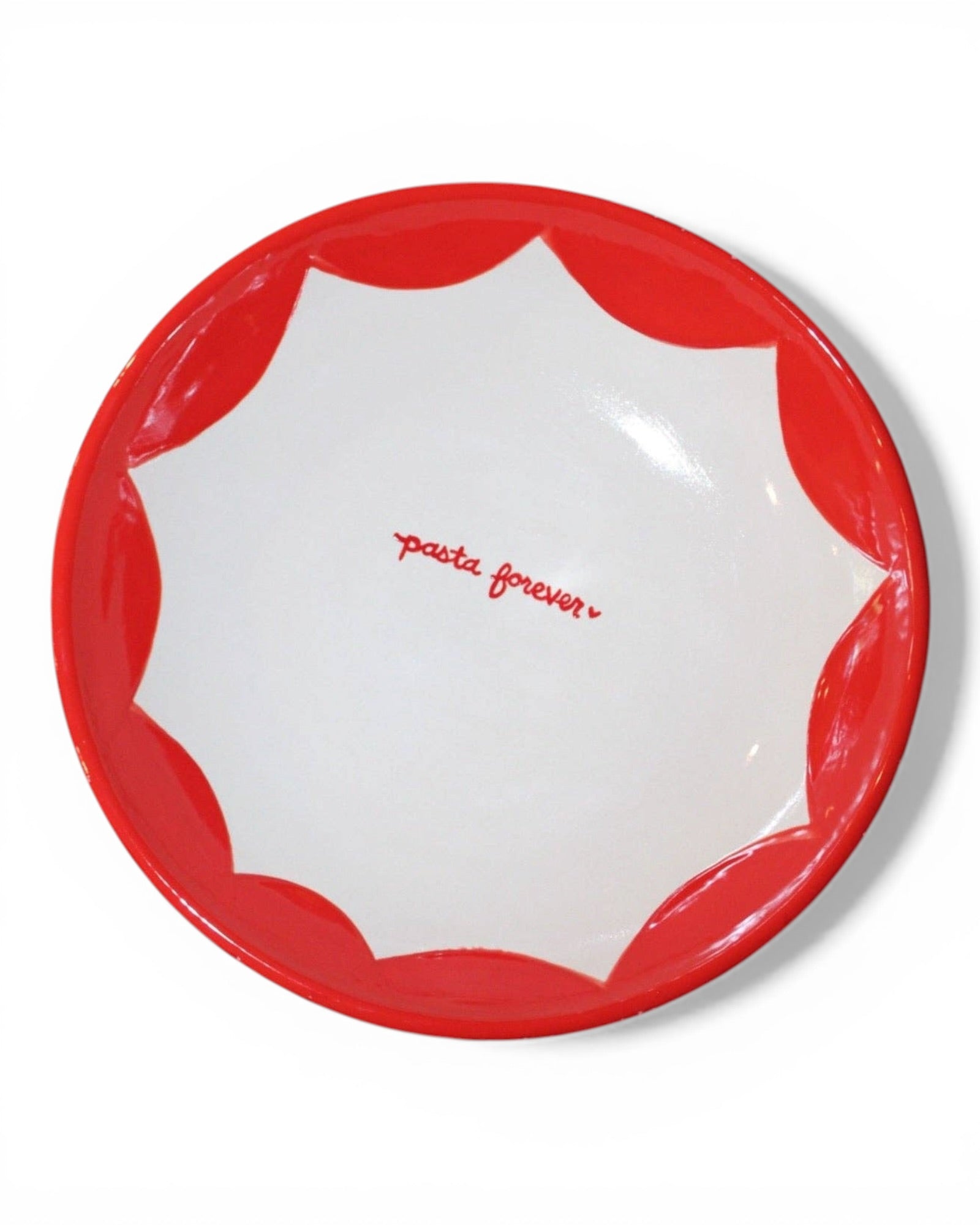 Hand-painted in Italy, the “Pasta Forever” Bowl is crafted from Italian clay and designed for generous, family-style serving. The bold lettering paired with vibrant, expressive patterns makes each piece entirely one of a kind—bringing personality and warmth to the table. Sized for everything from weeknight pasta to full-table spreads, it’s a piece that feels both functional and collectible.