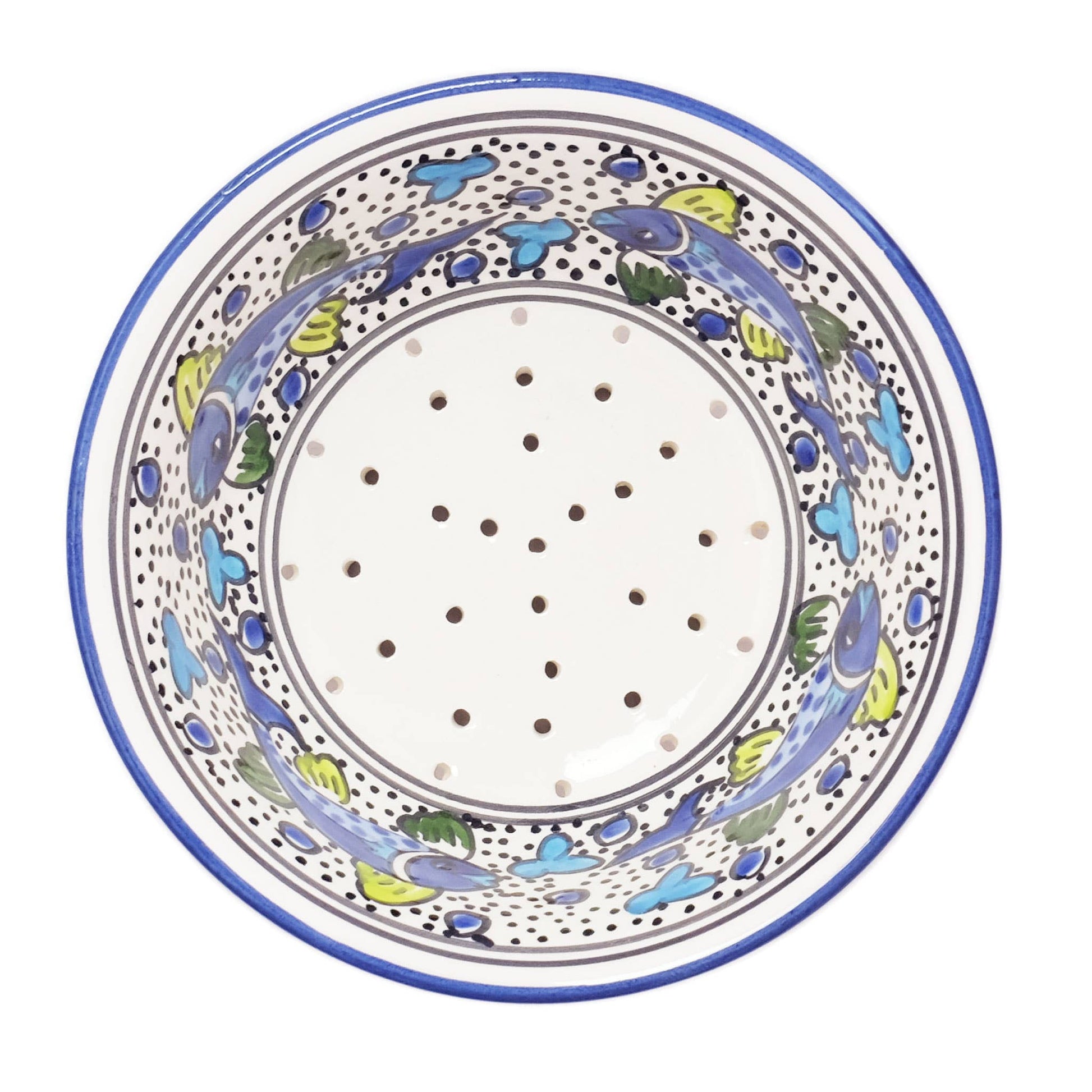 This Small Ceramic Berry Bowl Strainer with a fish motif brings personality to everyday kitchen tasks. Designed with perforations for rinsing berries and small fruits, it functions seamlessly as both a strainer and a serving bowl.