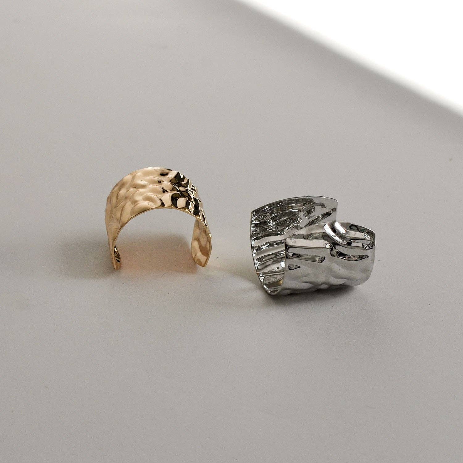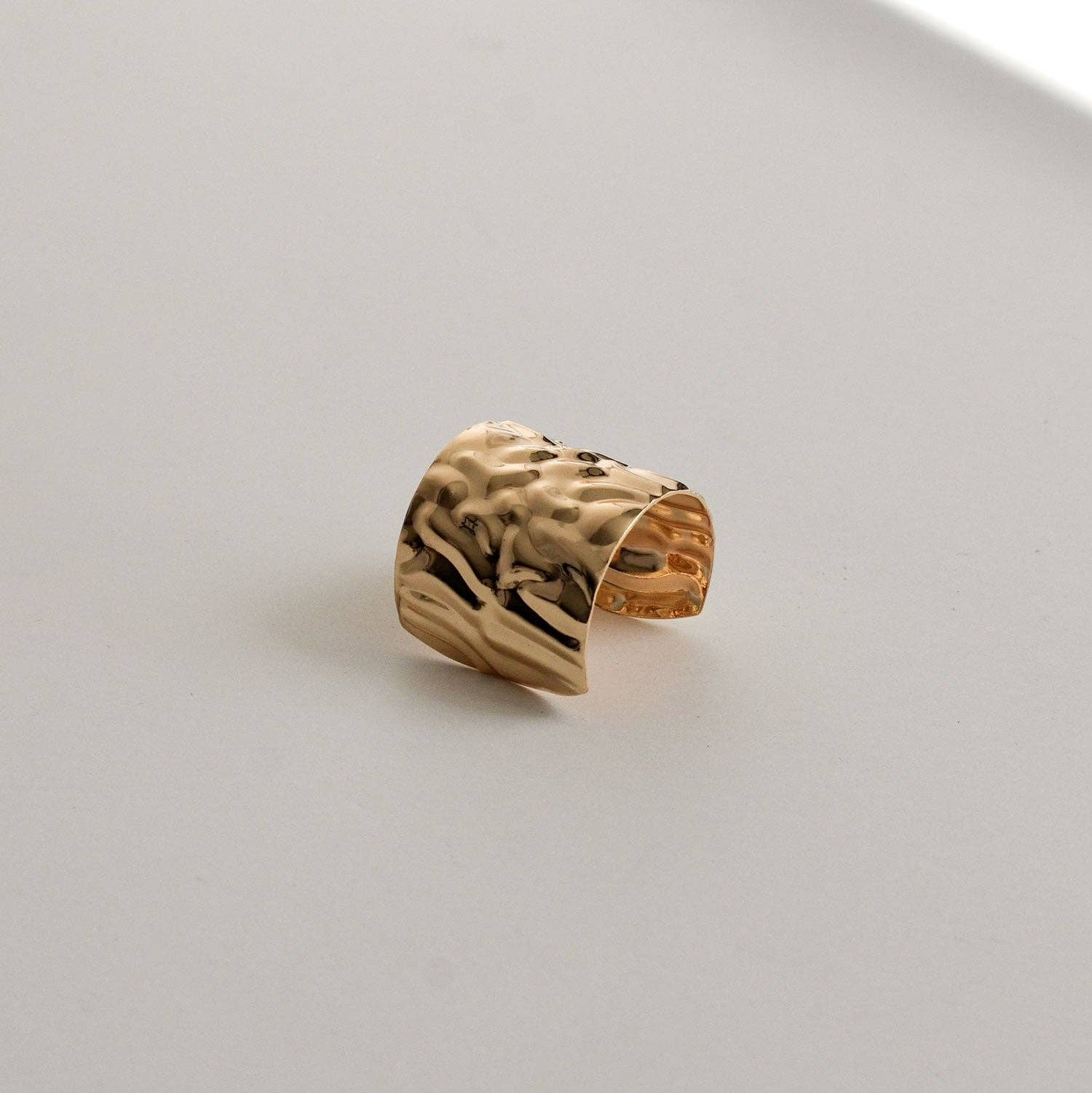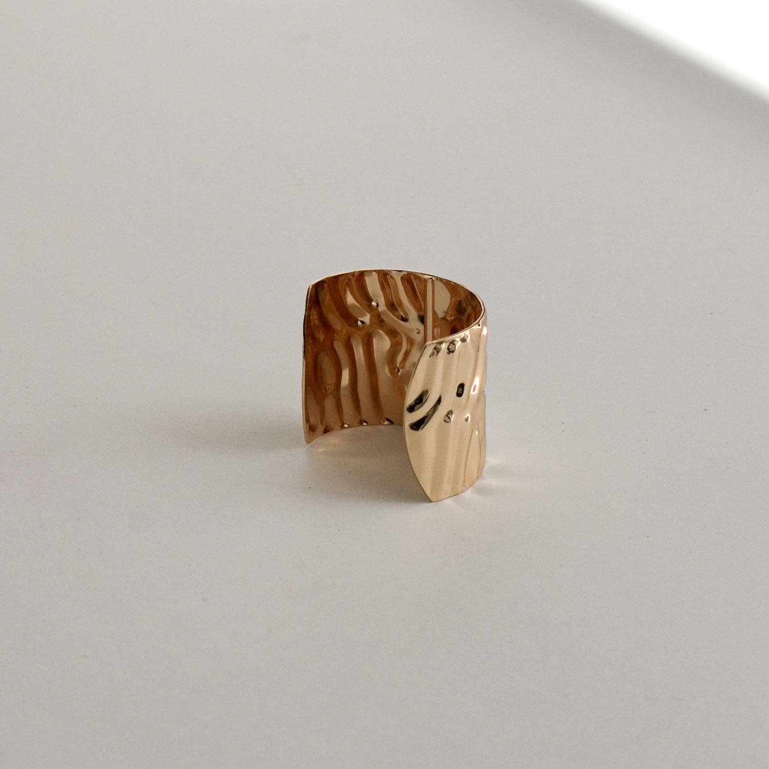 * The Textured Metal Hair Ponytail Cuff Stick | Gold is a stylish hair accessory that adds elegance to any hairstyle. Its built-in stick and shaped cuff secure the band firmly in place, and its lightweight and compact size makes it great for on-the-go styling. Suitable for all hair types and perfect for various occasions. Dimensions: 1.6" x 1.5", Material: Alloy.