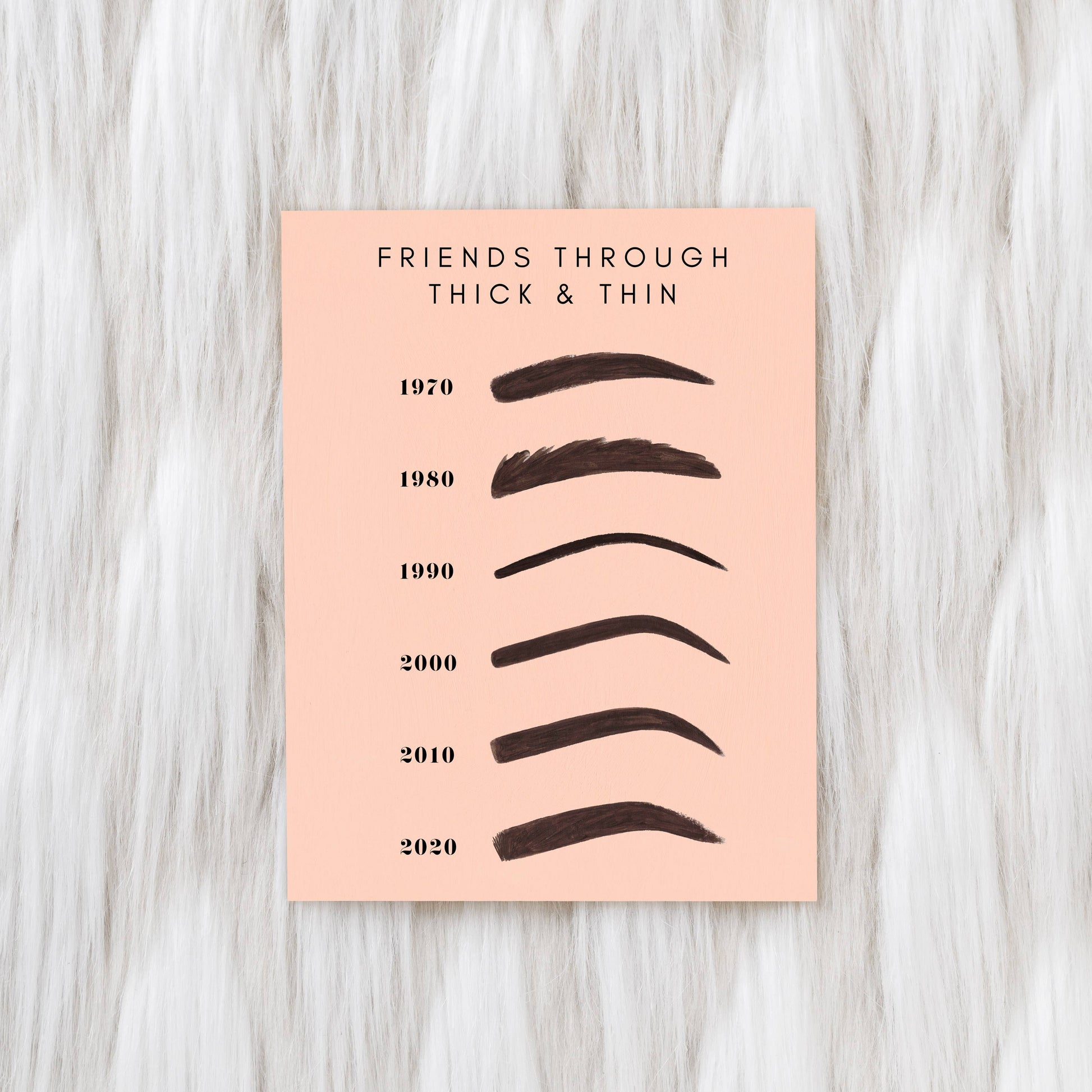 Friends Through Thick & Thin greeting card. For your way-back friends and the brow-obsessed alike. Single blank interior greeting card with matching ivory envelope. Bestseller!