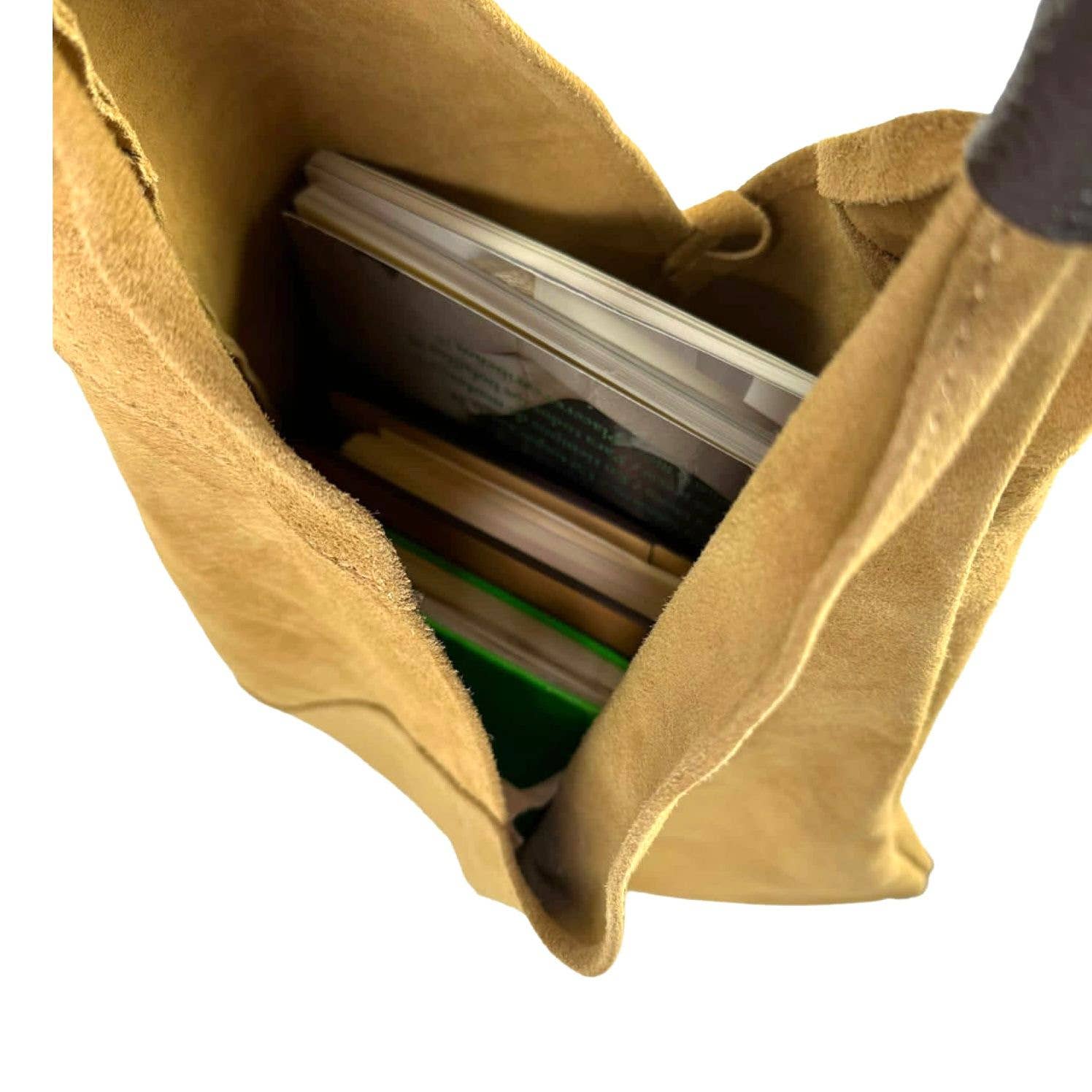 Wide Suede Leather Shoulder Bag for Women with Extra Coin Purse.